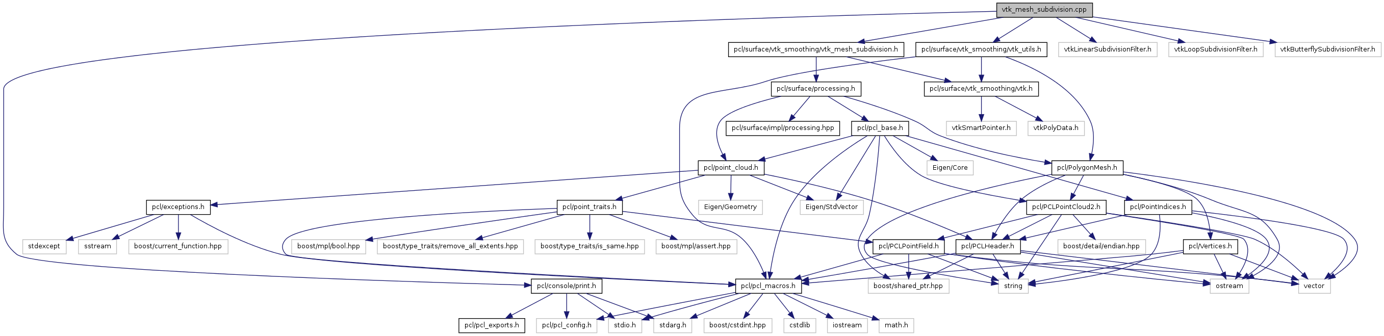 #include <pcl/console/print.h>#include <pcl/surface/vtk_smoothing/vtk_mesh_subdivision.h>#include <pcl/surface/vtk_smoothing/vtk_utils.h>#include <vtkLinearSubdivisionFilter.h>#include <vtkLoopSubdivisionFilter.h>#include <vtkButterflySubdivisionFilter.h>