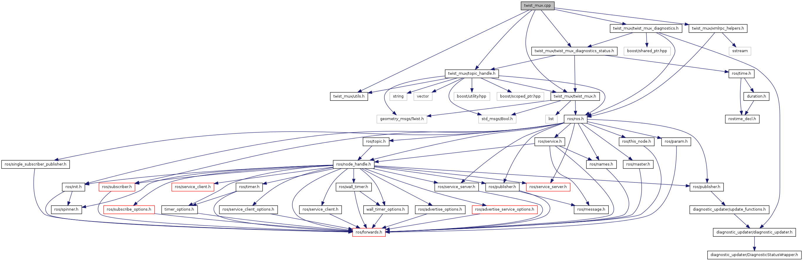 #include <twist_mux/twist_mux.h>#include <twist_mux/topic_handle.h>#include <twist_mux/twist_mux_diagnostics.h>#include <twist_mux/twist_mux_diagnostics_status.h>#include <twist_mux/utils.h>#include <twist_mux/xmlrpc_helpers.h>
