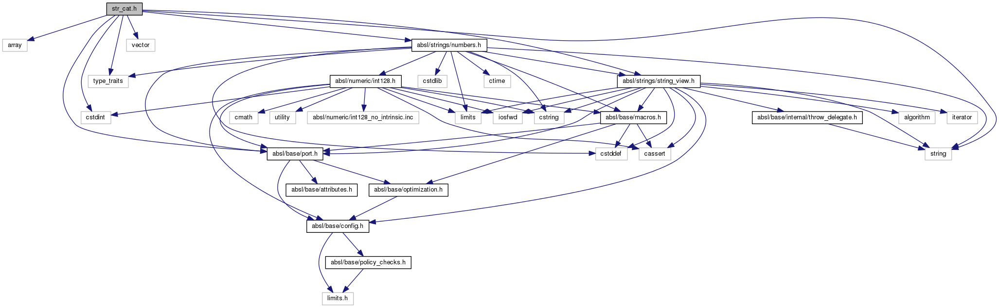 #include <array>#include <cstdint>#include <string>#include <type_traits>#include <vector>#include "absl/base/port.h"#include "absl/strings/numbers.h"#include "absl/strings/string_view.h"