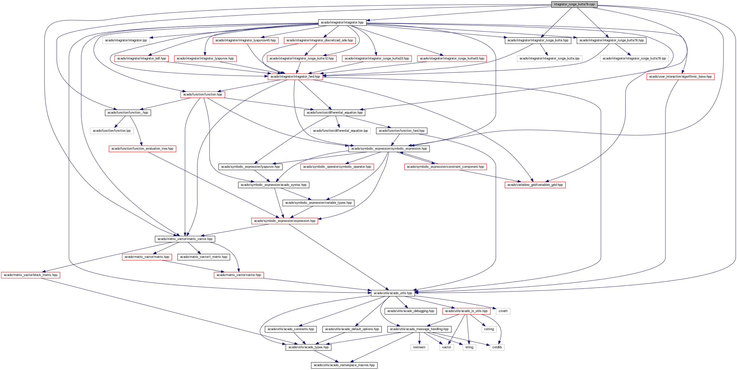 Include dependency graph for integrator_runge_kutta78.cpp: