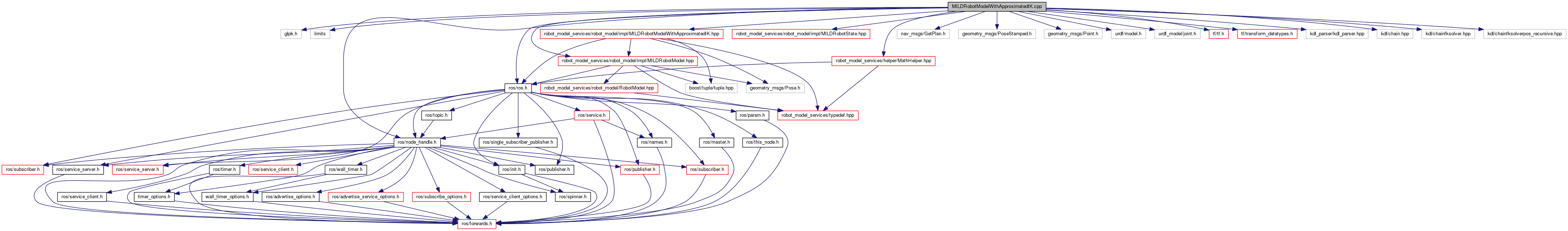 #include <glpk.h>#include <limits>#include <ros/ros.h>#include <ros/node_handle.h>#include "robot_model_services/robot_model/impl/MILDRobotModel.hpp"#include "robot_model_services/robot_model/impl/MILDRobotModelWithApproximatedIK.hpp"#include "robot_model_services/robot_model/impl/MILDRobotState.hpp"#include "robot_model_services/helper/MathHelper.hpp"#include "nav_msgs/GetPlan.h"#include "geometry_msgs/PoseStamped.h"#include "geometry_msgs/Point.h"#include "urdf/model.h"#include "urdf_model/joint.h"#include "tf/tf.h"#include "tf/transform_datatypes.h"#include <kdl_parser/kdl_parser.hpp>#include <kdl/chain.hpp>#include <kdl/chainfksolver.hpp>#include <kdl/chainfksolverpos_recursive.hpp>