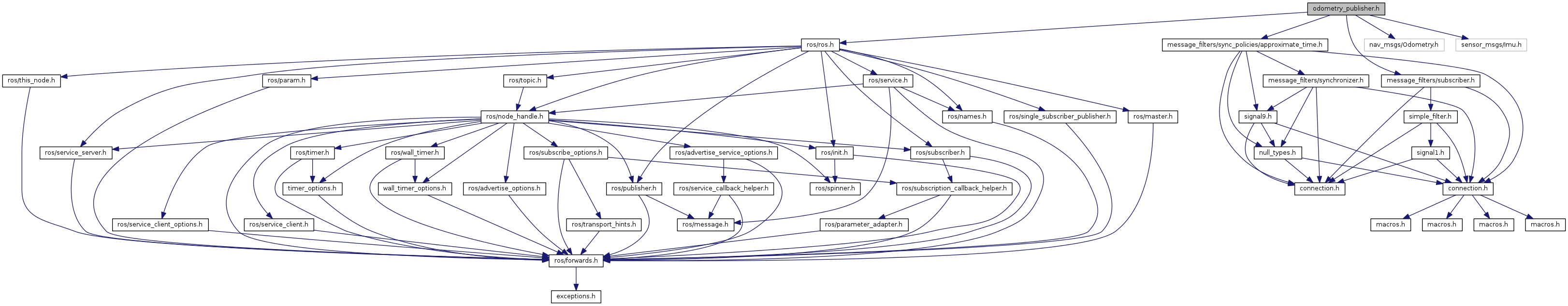 #include <ros/ros.h>#include <message_filters/subscriber.h>#include <message_filters/sync_policies/approximate_time.h>#include <nav_msgs/Odometry.h>#include <sensor_msgs/Imu.h>