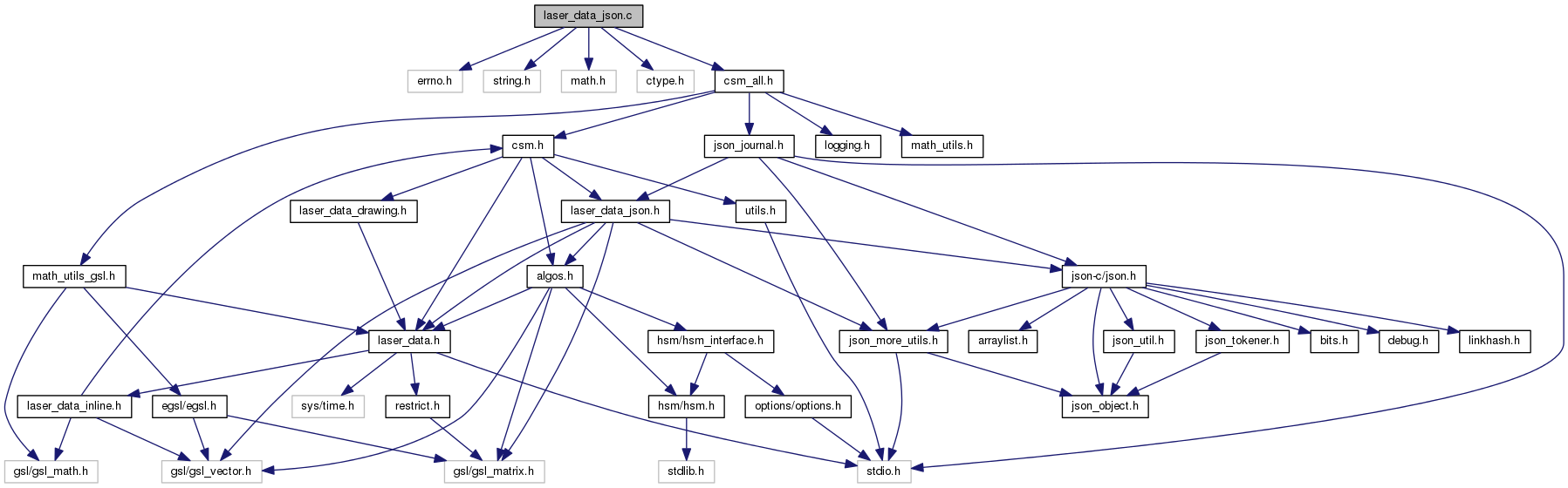Include dependency graph for laser_data_json.c: