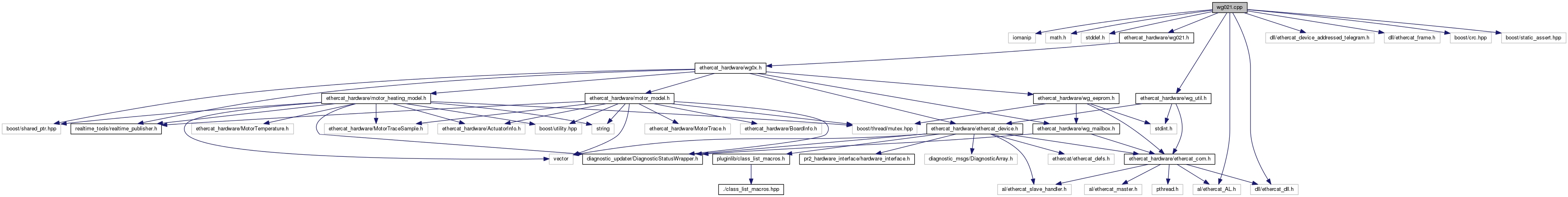 #include <iomanip>#include <math.h>#include <stddef.h>#include <ethercat_hardware/wg021.h>#include <dll/ethercat_dll.h>#include <al/ethercat_AL.h>#include <dll/ethercat_device_addressed_telegram.h>#include <dll/ethercat_frame.h>#include <boost/crc.hpp>#include <boost/static_assert.hpp>#include "ethercat_hardware/wg_util.h"