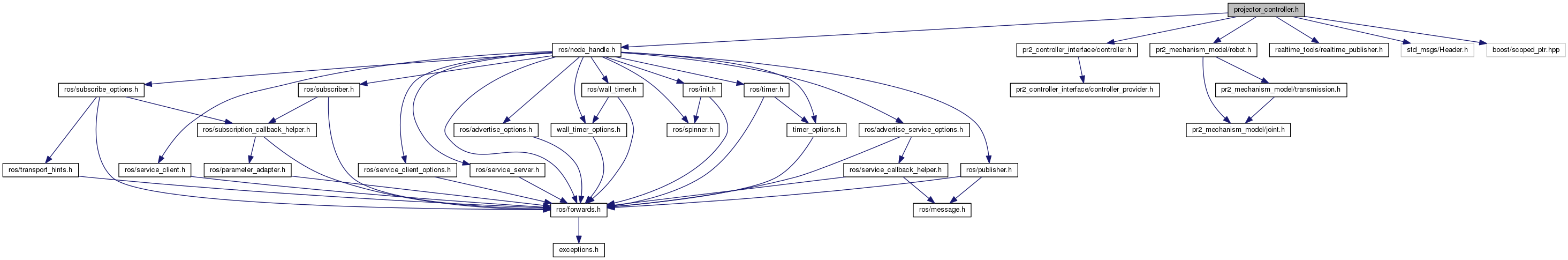 #include <ros/node_handle.h>#include <pr2_controller_interface/controller.h>#include <pr2_mechanism_model/robot.h>#include <realtime_tools/realtime_publisher.h>#include <std_msgs/Header.h>#include <boost/scoped_ptr.hpp>