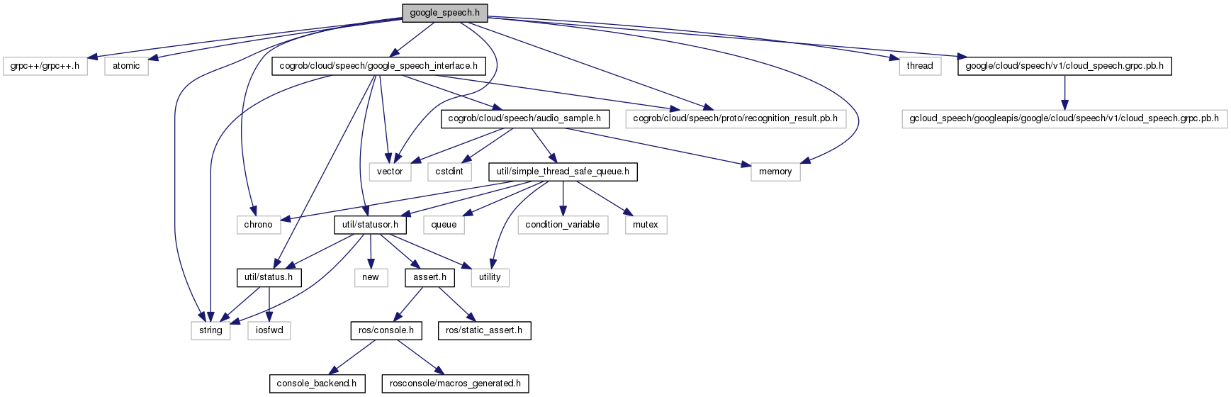 #include <grpc++/grpc++.h>#include <atomic>#include <chrono>#include <memory>#include <thread>#include <string>#include <vector>#include "cogrob/cloud/speech/google_speech_interface.h"#include "cogrob/cloud/speech/proto/recognition_result.pb.h"#include "google/cloud/speech/v1/cloud_speech.grpc.pb.h"