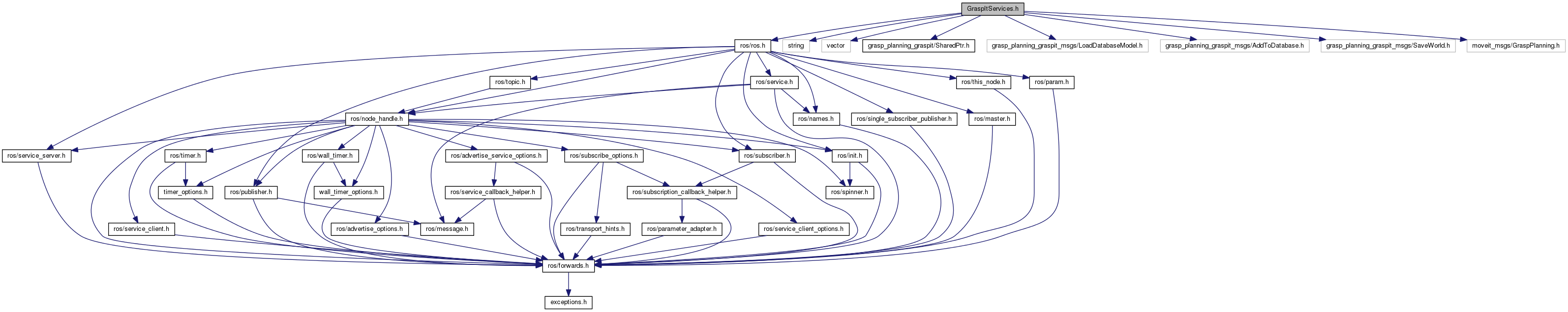 #include <ros/ros.h>#include <string>#include <vector>#include <grasp_planning_graspit/SharedPtr.h>#include <grasp_planning_graspit_msgs/LoadDatabaseModel.h>#include <grasp_planning_graspit_msgs/AddToDatabase.h>#include <grasp_planning_graspit_msgs/SaveWorld.h>#include <moveit_msgs/GraspPlanning.h>