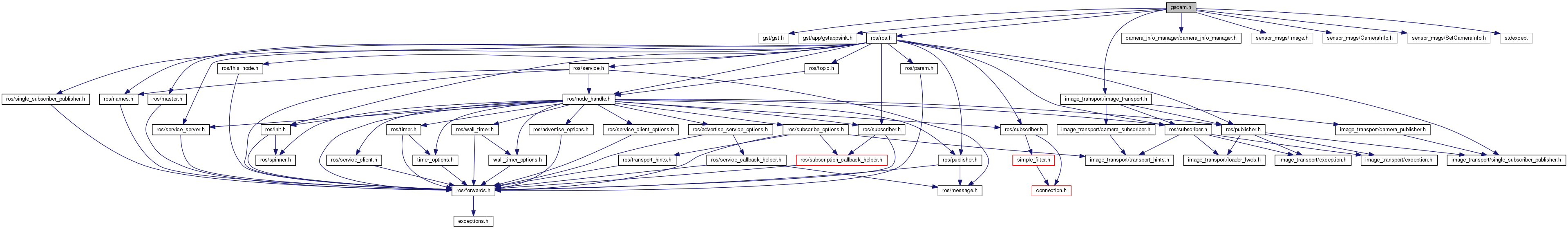 #include <gst/gst.h>#include <gst/app/gstappsink.h>#include <ros/ros.h>#include <image_transport/image_transport.h>#include <camera_info_manager/camera_info_manager.h>#include <sensor_msgs/Image.h>#include <sensor_msgs/CameraInfo.h>#include <sensor_msgs/SetCameraInfo.h>#include <stdexcept>