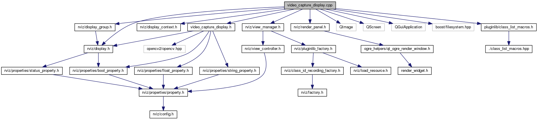 #include "video_capture_display.h"#include <rviz/display_context.h>#include <rviz/view_manager.h>#include <rviz/display_group.h>#include <rviz/display.h>#include <rviz/render_panel.h>#include <QImage>#include <QScreen>#include <QGuiApplication>#include <boost/filesystem.hpp>#include <pluginlib/class_list_macros.h>