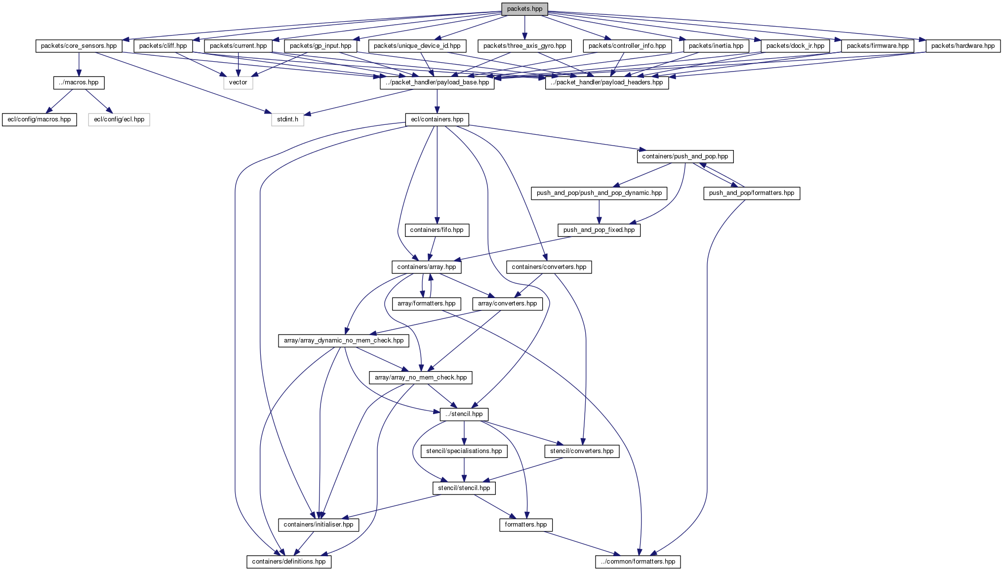 #include "packets/cliff.hpp"#include "packets/core_sensors.hpp"#include "packets/current.hpp"#include "packets/gp_input.hpp"#include "packets/inertia.hpp"#include "packets/dock_ir.hpp"#include "packets/firmware.hpp"#include "packets/hardware.hpp"#include "packets/unique_device_id.hpp"#include "packets/three_axis_gyro.hpp"#include "packets/controller_info.hpp"