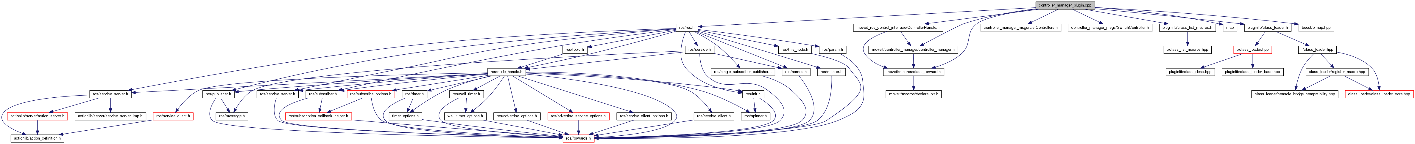 #include <ros/ros.h>#include <moveit/macros/class_forward.h>#include <moveit_ros_control_interface/ControllerHandle.h>#include <moveit/controller_manager/controller_manager.h>#include <controller_manager_msgs/ListControllers.h>#include <controller_manager_msgs/SwitchController.h>#include <pluginlib/class_list_macros.h>#include <map>#include <pluginlib/class_loader.h>#include <boost/bimap.hpp>