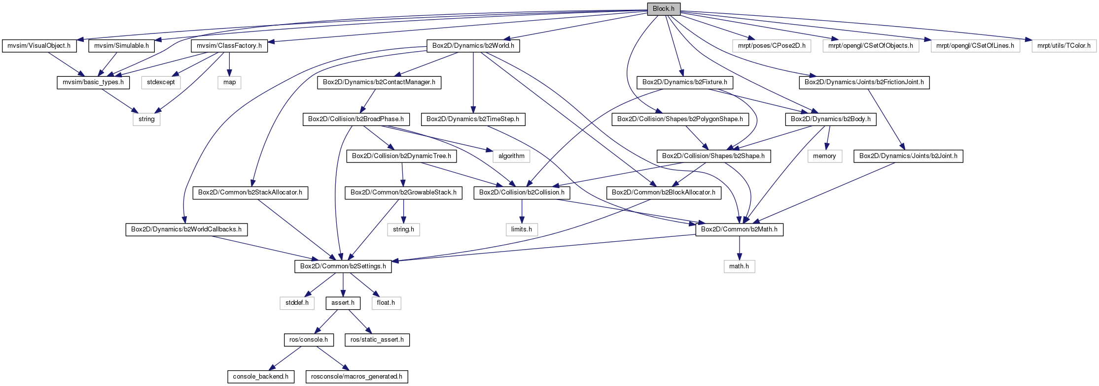 #include <mvsim/basic_types.h>#include <mvsim/VisualObject.h>#include <mvsim/Simulable.h>#include <mvsim/ClassFactory.h>#include <Box2D/Dynamics/b2World.h>#include <Box2D/Dynamics/b2Body.h>#include <Box2D/Collision/Shapes/b2PolygonShape.h>#include <Box2D/Dynamics/b2Fixture.h>#include <Box2D/Dynamics/Joints/b2FrictionJoint.h>#include <mrpt/poses/CPose2D.h>#include <mrpt/opengl/CSetOfObjects.h>#include <mrpt/opengl/CSetOfLines.h>#include <mrpt/utils/TColor.h>