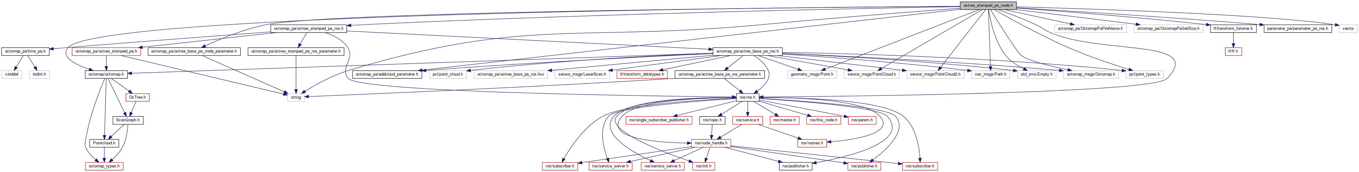 #include "octomap_pa/octree_stamped_pa_ros.h"#include "octomap_pa/octree_base_pa_node_parameter.h"#include "octomap_pa/addcloud_parameter.h"#include "octomap_pa/OctomapPaFileName.h"#include "octomap_pa/OctomapPaGetSize.h"#include <ros/ros.h>#include <geometry_msgs/Point.h>#include <sensor_msgs/PointCloud.h>#include <sensor_msgs/PointCloud2.h>#include <nav_msgs/Path.h>#include <std_srvs/Empty.h>#include <tf/transform_listener.h>#include <octomap_msgs/Octomap.h>#include <parameter_pa/parameter_pa_ros.h>#include <pcl/point_types.h>#include <octomap/octomap.h>#include <string>#include <vector>
