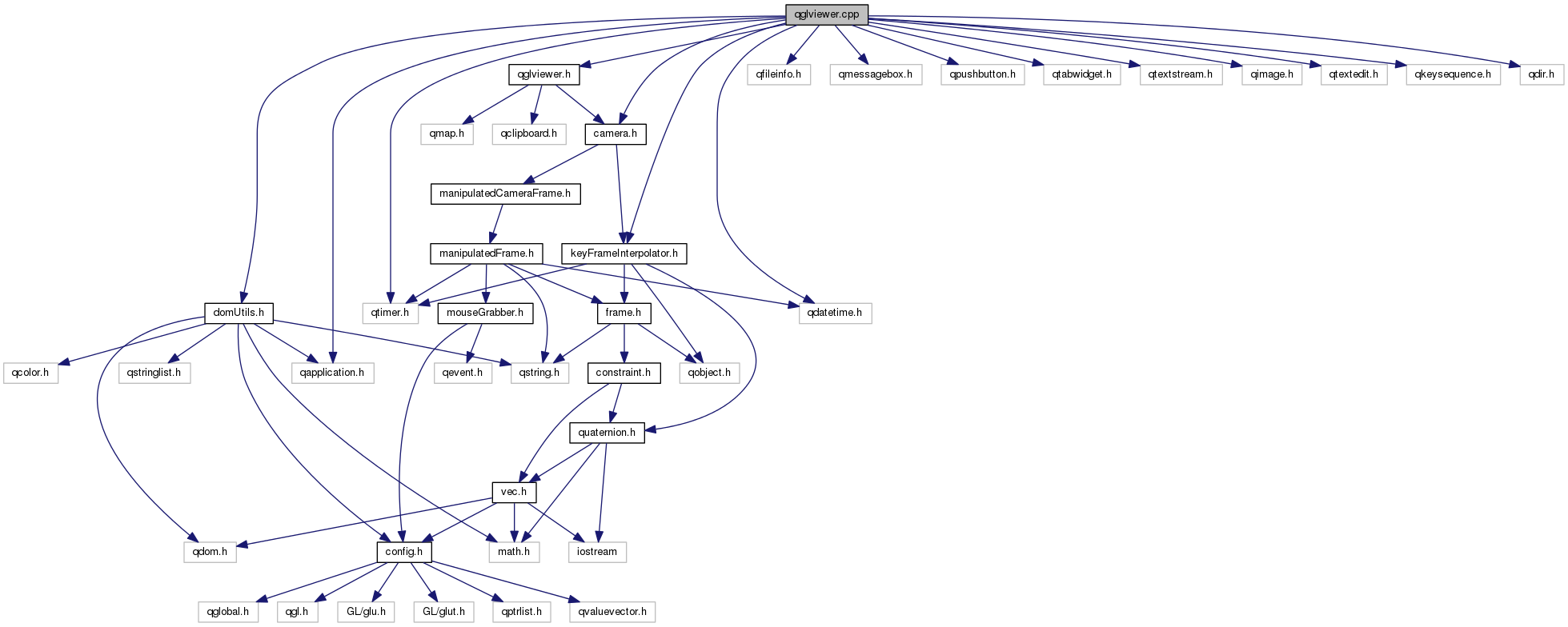 #include "domUtils.h"#include "qglviewer.h"#include "camera.h"#include "keyFrameInterpolator.h"#include <qapplication.h>#include <qfileinfo.h>#include <qdatetime.h>#include <qmessagebox.h>#include <qpushbutton.h>#include <qtabwidget.h>#include <qtextstream.h>#include <qtimer.h>#include <qimage.h>#include <qtextedit.h>#include <qkeysequence.h>#include <qdir.h>