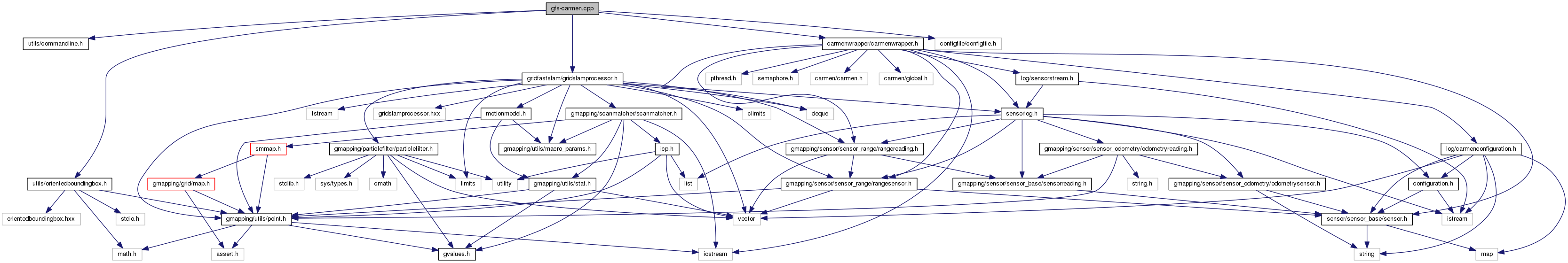 #include <utils/commandline.h>#include <carmenwrapper/carmenwrapper.h>#include <gridfastslam/gridslamprocessor.h>#include <utils/orientedboundingbox.h>#include <configfile/configfile.h>