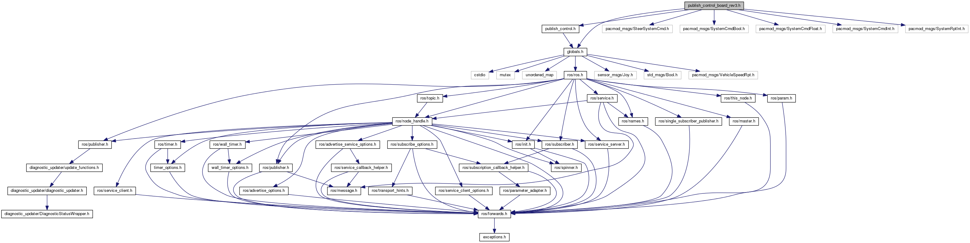 #include "globals.h"#include "publish_control.h"#include <pacmod_msgs/SteerSystemCmd.h>#include <pacmod_msgs/SystemCmdBool.h>#include <pacmod_msgs/SystemCmdFloat.h>#include <pacmod_msgs/SystemCmdInt.h>#include <pacmod_msgs/SystemRptInt.h>