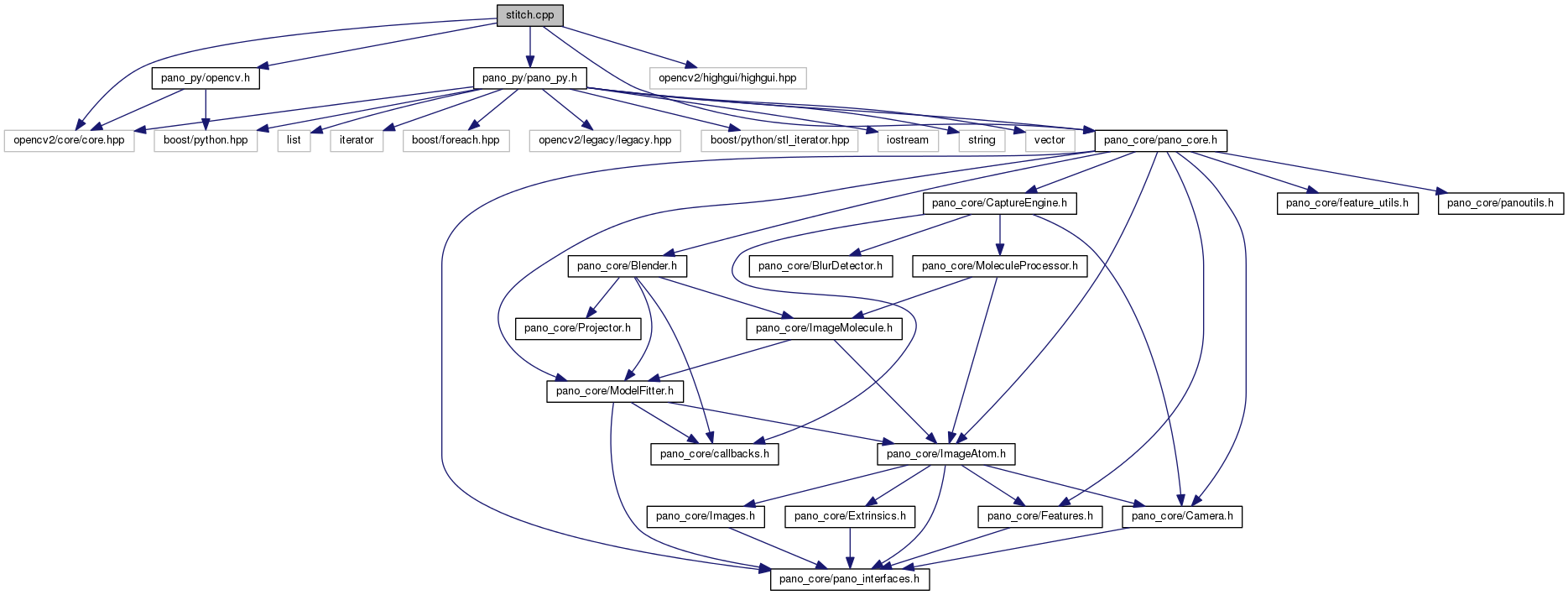 Include dependency graph for stitch.cpp: