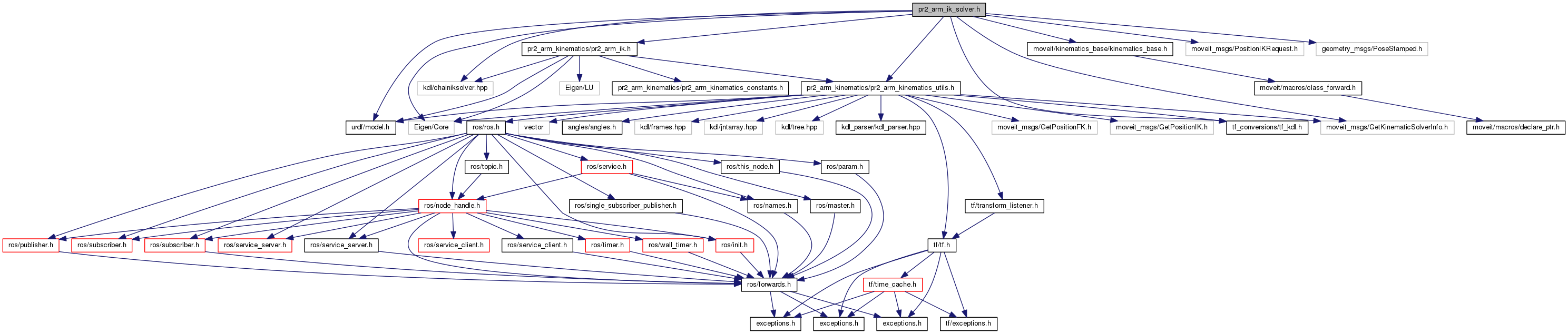 #include <urdf/model.h>#include <Eigen/Core>#include <kdl/chainiksolver.hpp>#include <pr2_arm_kinematics/pr2_arm_ik.h>#include <moveit/kinematics_base/kinematics_base.h>#include <pr2_arm_kinematics/pr2_arm_kinematics_utils.h>#include <moveit_msgs/GetKinematicSolverInfo.h>#include <moveit_msgs/PositionIKRequest.h>#include <geometry_msgs/PoseStamped.h>#include <tf_conversions/tf_kdl.h>
