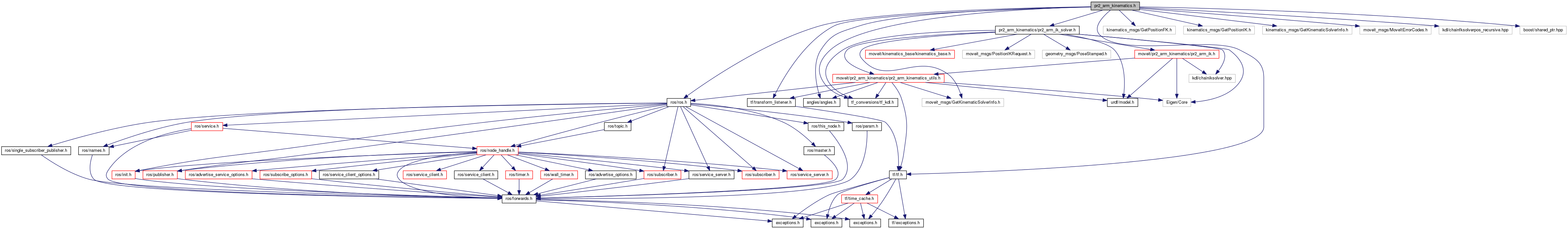 #include <ros/ros.h>#include <tf/tf.h>#include <tf/transform_listener.h>#include <angles/angles.h>#include <pr2_arm_kinematics/pr2_arm_ik_solver.h>#include <tf_conversions/tf_kdl.h>#include <kinematics_msgs/GetPositionFK.h>#include <kinematics_msgs/GetPositionIK.h>#include <kinematics_msgs/GetKinematicSolverInfo.h>#include <moveit_msgs/MoveItErrorCodes.h>#include <kdl/chainfksolverpos_recursive.hpp>#include <boost/shared_ptr.hpp>