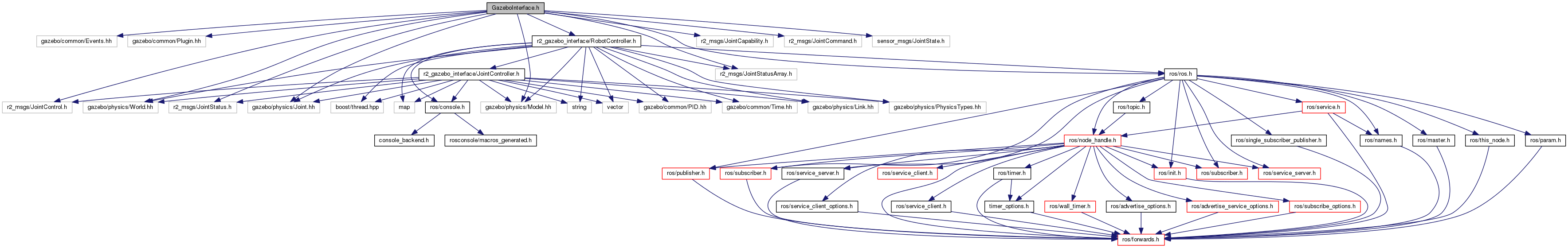 #include <gazebo/common/Events.hh>#include <gazebo/common/Plugin.hh>#include <r2_gazebo_interface/RobotController.h>#include <r2_msgs/JointCapability.h>#include <r2_msgs/JointCommand.h>#include <r2_msgs/JointControl.h>#include <r2_msgs/JointStatus.h>#include <r2_msgs/JointStatusArray.h>#include <gazebo/physics/Joint.hh>#include <gazebo/physics/Model.hh>#include <gazebo/physics/World.hh>#include <ros/ros.h>#include <sensor_msgs/JointState.h>