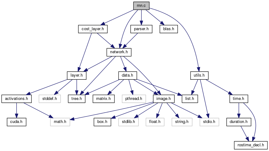 Include dependency graph for rnn.c: