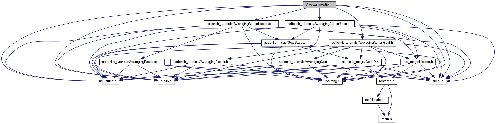 #include <stdint.h>#include <string.h>#include <stdlib.h>#include "ros/msg.h"#include "actionlib_tutorials/AveragingActionGoal.h"#include "actionlib_tutorials/AveragingActionResult.h"#include "actionlib_tutorials/AveragingActionFeedback.h"
