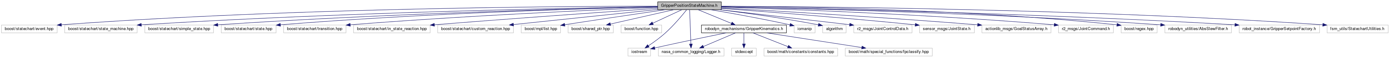 #include <boost/statechart/event.hpp>#include <boost/statechart/state_machine.hpp>#include <boost/statechart/simple_state.hpp>#include <boost/statechart/state.hpp>#include <boost/statechart/transition.hpp>#include <boost/statechart/in_state_reaction.hpp>#include <boost/statechart/custom_reaction.hpp>#include <boost/mpl/list.hpp>#include <boost/shared_ptr.hpp>#include <boost/function.hpp>#include <iostream>#include <iomanip>#include <algorithm>#include "nasa_common_logging/Logger.h"#include <r2_msgs/JointControlData.h>#include <sensor_msgs/JointState.h>#include <actionlib_msgs/GoalStatusArray.h>#include <r2_msgs/JointCommand.h>#include <boost/regex.hpp>#include "robodyn_mechanisms/GripperKinematics.h"#include "robodyn_utilities/AbsSlewFilter.h"#include "robot_instance/GripperSetpointFactory.h"#include "fsm_utils/StatechartUtilities.h"