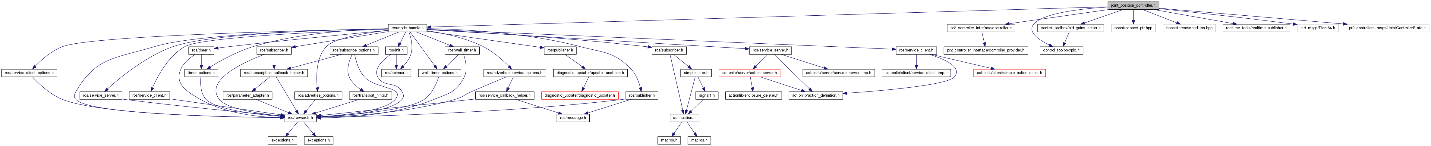 #include <ros/node_handle.h>#include <pr2_controller_interface/controller.h>#include <control_toolbox/pid.h>#include "control_toolbox/pid_gains_setter.h"#include <boost/scoped_ptr.hpp>#include <boost/thread/condition.hpp>#include <realtime_tools/realtime_publisher.h>#include <std_msgs/Float64.h>#include <pr2_controllers_msgs/JointControllerState.h>