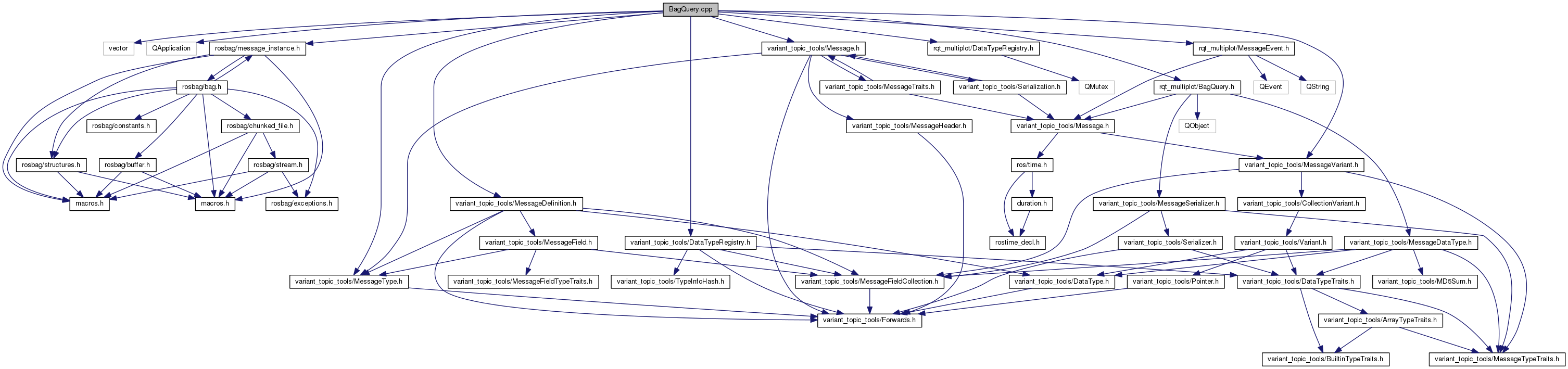 #include <vector>#include <QApplication>#include <rosbag/message_instance.h>#include <variant_topic_tools/DataTypeRegistry.h>#include <variant_topic_tools/Message.h>#include <variant_topic_tools/MessageDefinition.h>#include <variant_topic_tools/MessageType.h>#include <variant_topic_tools/MessageVariant.h>#include <rqt_multiplot/DataTypeRegistry.h>#include <rqt_multiplot/MessageEvent.h>#include "rqt_multiplot/BagQuery.h"