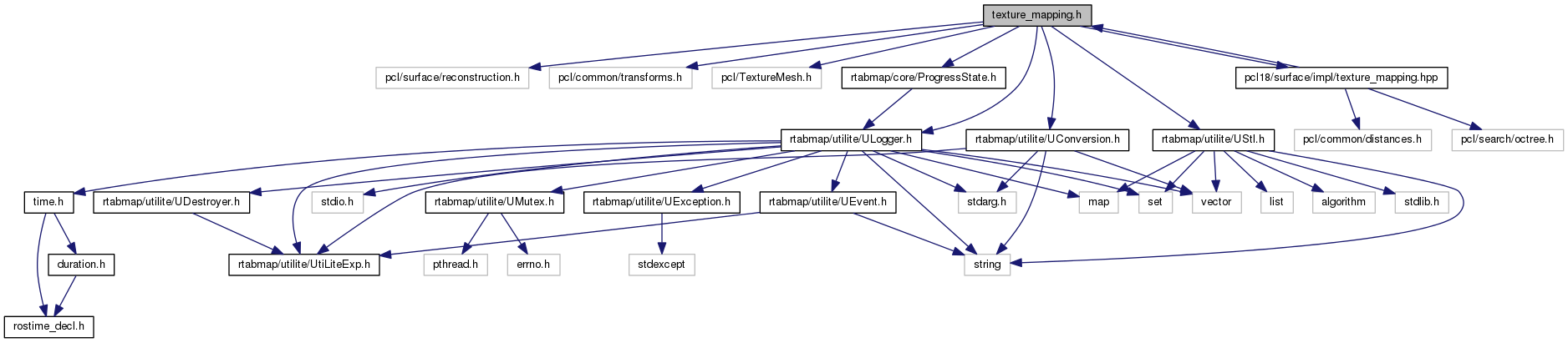 #include <pcl/surface/reconstruction.h>#include <pcl/common/transforms.h>#include <pcl/TextureMesh.h>#include <rtabmap/core/ProgressState.h>#include <rtabmap/utilite/ULogger.h>#include <rtabmap/utilite/UStl.h>#include <rtabmap/utilite/UConversion.h>#include <pcl18/surface/impl/texture_mapping.hpp>