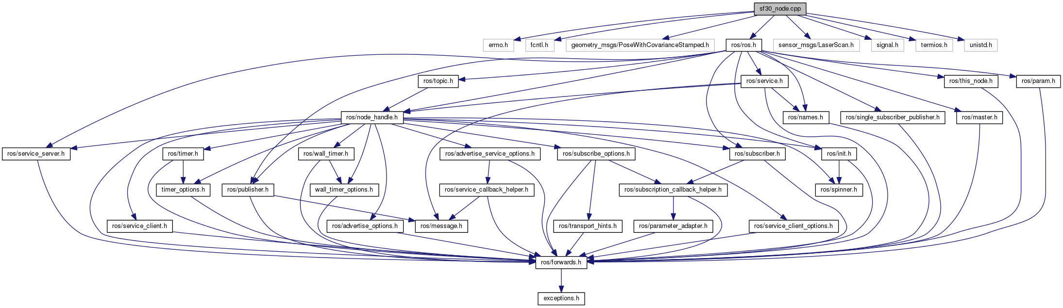 Include dependency graph for sf30_node.cpp: