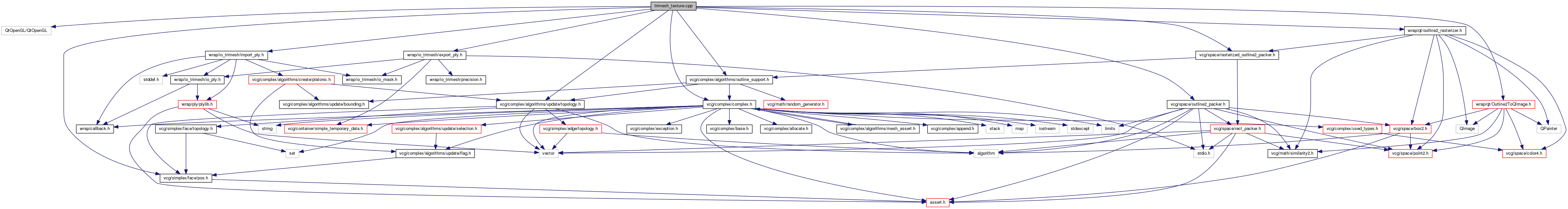 #include <QtOpenGL/QtOpenGL>#include <vcg/complex/complex.h>#include <wrap/io_trimesh/import_ply.h>#include <wrap/io_trimesh/export_ply.h>#include <vcg/complex/algorithms/update/topology.h>#include <vcg/complex/algorithms/outline_support.h>#include <vcg/simplex/face/pos.h>#include <vcg/space/outline2_packer.h>#include <wrap/qt/outline2_rasterizer.h>#include <vcg/space/rasterized_outline2_packer.h>#include <wrap/qt/Outline2ToQImage.h>