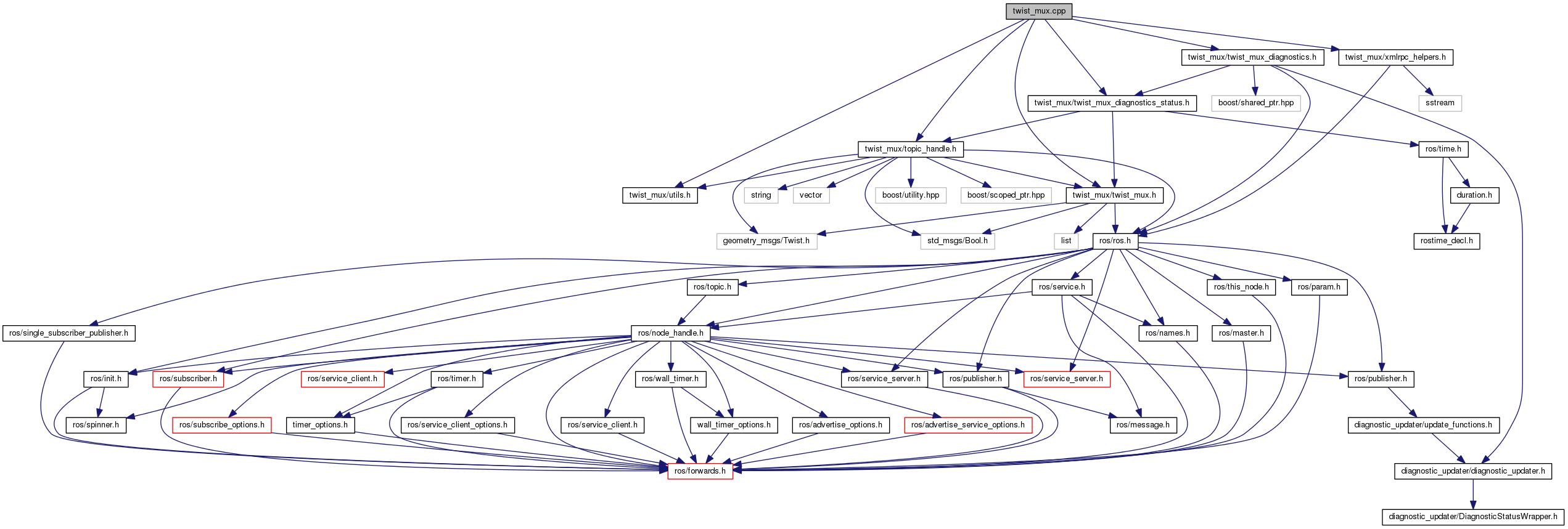 #include <twist_mux/twist_mux.h>#include <twist_mux/topic_handle.h>#include <twist_mux/twist_mux_diagnostics.h>#include <twist_mux/twist_mux_diagnostics_status.h>#include <twist_mux/utils.h>#include <twist_mux/xmlrpc_helpers.h>