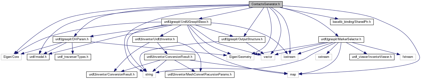 #include <urdf/model.h>#include <iostream>#include <string>#include <map>#include <vector>#include <Eigen/Core>#include <Eigen/Geometry>#include <urdf2graspit/Urdf2GraspItBase.h>#include <baselib_binding/SharedPtr.h>#include <urdf2graspit/DHParam.h>#include <urdf2graspit/MarkerSelector.h>#include <urdf2graspit/OutputStructure.h>