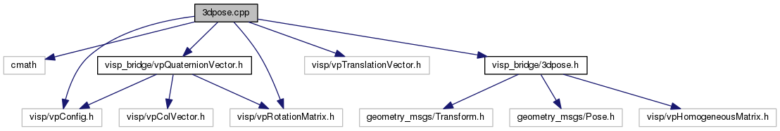 #include <cmath>#include <visp/vpConfig.h>#include <visp/vpRotationMatrix.h>#include "visp_bridge/vpQuaternionVector.h"#include <visp/vpTranslationVector.h>#include "visp_bridge/3dpose.h"