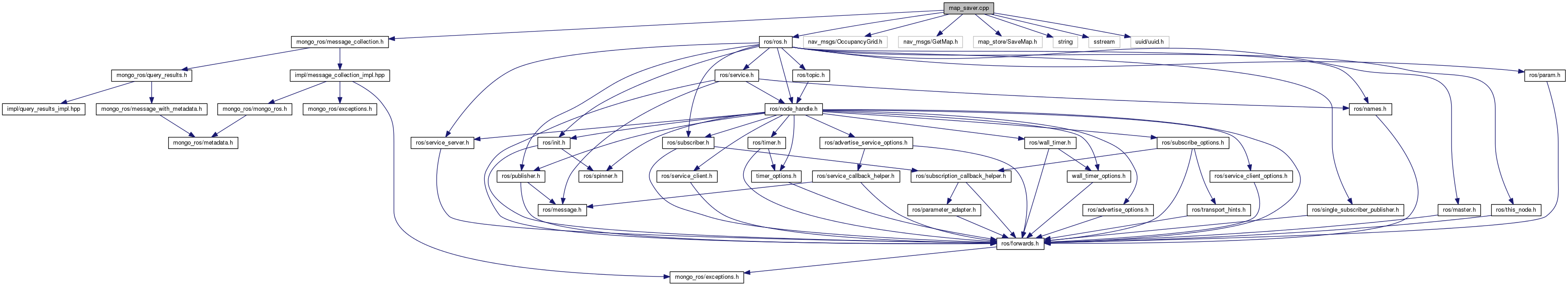 #include <mongo_ros/message_collection.h>#include <ros/ros.h>#include <nav_msgs/OccupancyGrid.h>#include <nav_msgs/GetMap.h>#include <map_store/SaveMap.h>#include <string>#include <sstream>#include <uuid/uuid.h>
