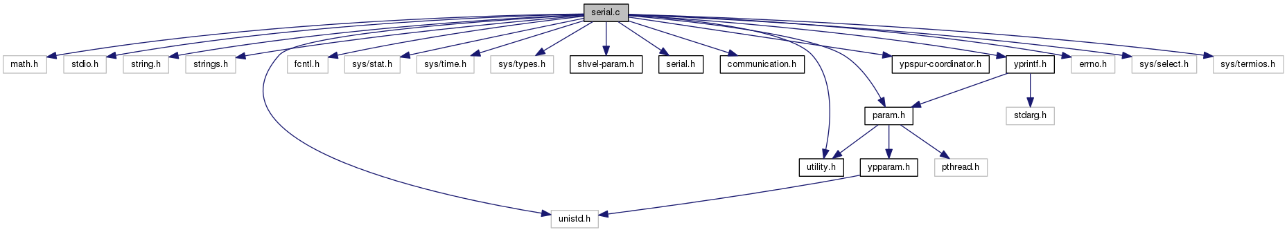#include <math.h>#include <stdio.h>#include <string.h>#include <strings.h>#include <unistd.h>#include <fcntl.h>#include <sys/stat.h>#include <sys/time.h>#include <sys/types.h>#include <shvel-param.h>#include <serial.h>#include <communication.h>#include <utility.h>#include <param.h>#include <ypspur-coordinator.h>#include <yprintf.h>#include <errno.h>#include <sys/select.h>#include <sys/termios.h>