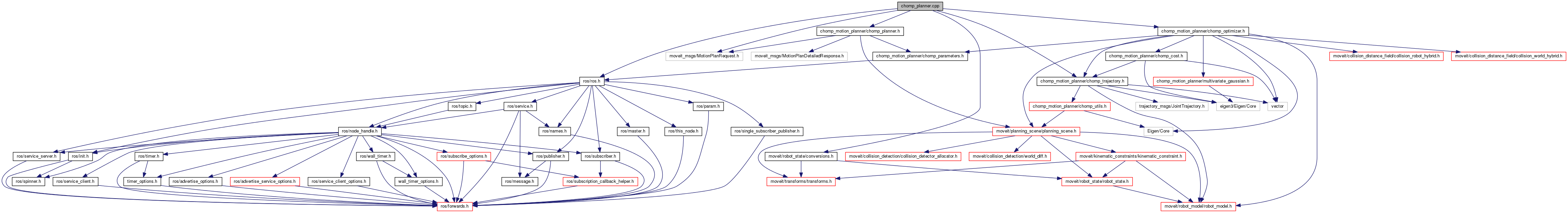 #include <ros/ros.h>#include <chomp_motion_planner/chomp_planner.h>#include <chomp_motion_planner/chomp_trajectory.h>#include <chomp_motion_planner/chomp_optimizer.h>#include <moveit/robot_state/conversions.h>#include <moveit_msgs/MotionPlanRequest.h>