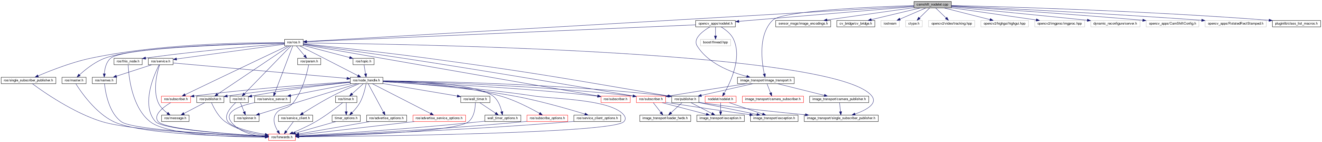#include <ros/ros.h>#include "opencv_apps/nodelet.h"#include <image_transport/image_transport.h>#include <sensor_msgs/image_encodings.h>#include <cv_bridge/cv_bridge.h>#include <iostream>#include <ctype.h>#include <opencv2/video/tracking.hpp>#include <opencv2/highgui/highgui.hpp>#include <opencv2/imgproc/imgproc.hpp>#include <dynamic_reconfigure/server.h>#include "opencv_apps/CamShiftConfig.h"#include "opencv_apps/RotatedRectStamped.h"#include <pluginlib/class_list_macros.h>