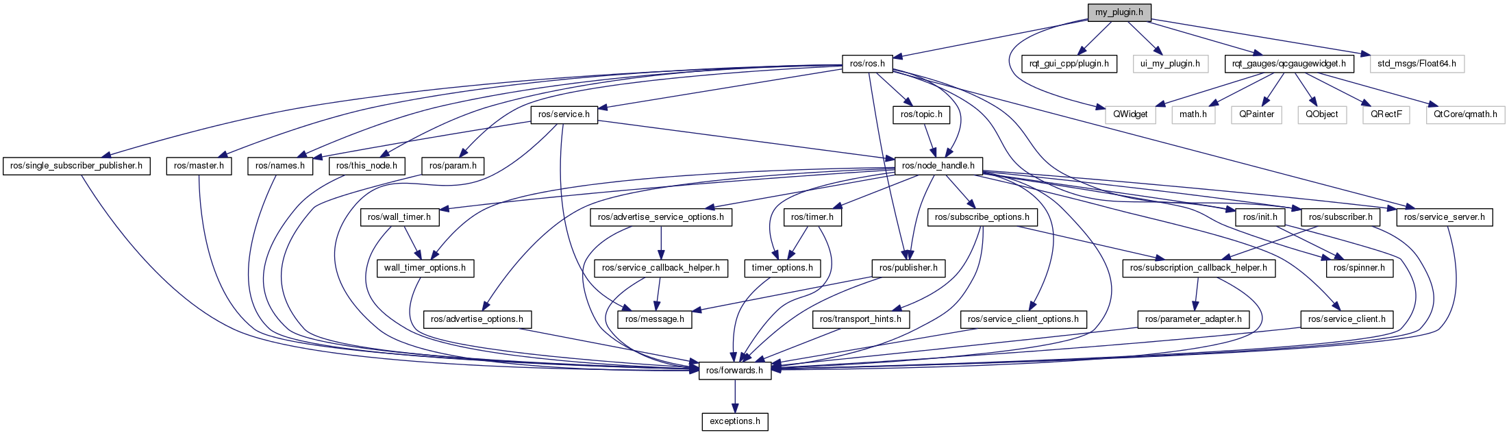 #include <QWidget>#include <ros/ros.h>#include <rqt_gui_cpp/plugin.h>#include <ui_my_plugin.h>#include "rqt_gauges/qcgaugewidget.h"#include <std_msgs/Float64.h>