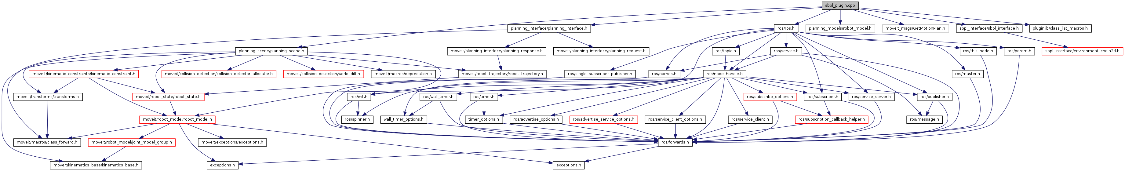 #include <ros/ros.h>#include <planning_interface/planning_interface.h>#include <planning_scene/planning_scene.h>#include <planning_models/robot_model.h>#include <moveit_msgs/GetMotionPlan.h>#include <sbpl_interface/sbpl_interface.h>#include <pluginlib/class_list_macros.h>