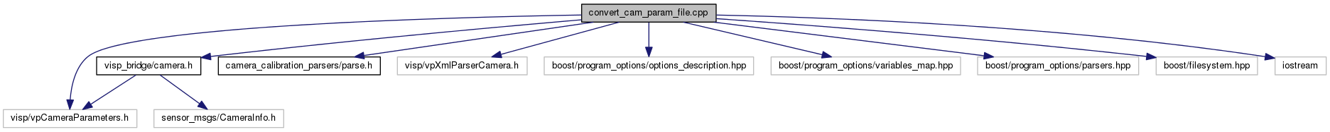 command line tool to convert a ViSP camera parameter file to a INI/YAML file compatible with ROS drivers More...