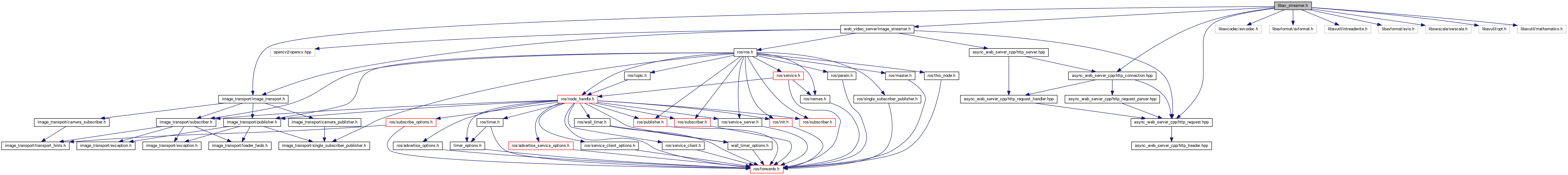 #include <image_transport/image_transport.h>#include "web_video_server/image_streamer.h"#include "async_web_server_cpp/http_request.hpp"#include "async_web_server_cpp/http_connection.hpp"#include <libavcodec/avcodec.h>#include <libavformat/avformat.h>#include <libavutil/intreadwrite.h>#include <libavformat/avio.h>#include <libswscale/swscale.h>#include <libavutil/opt.h>#include <libavutil/mathematics.h>