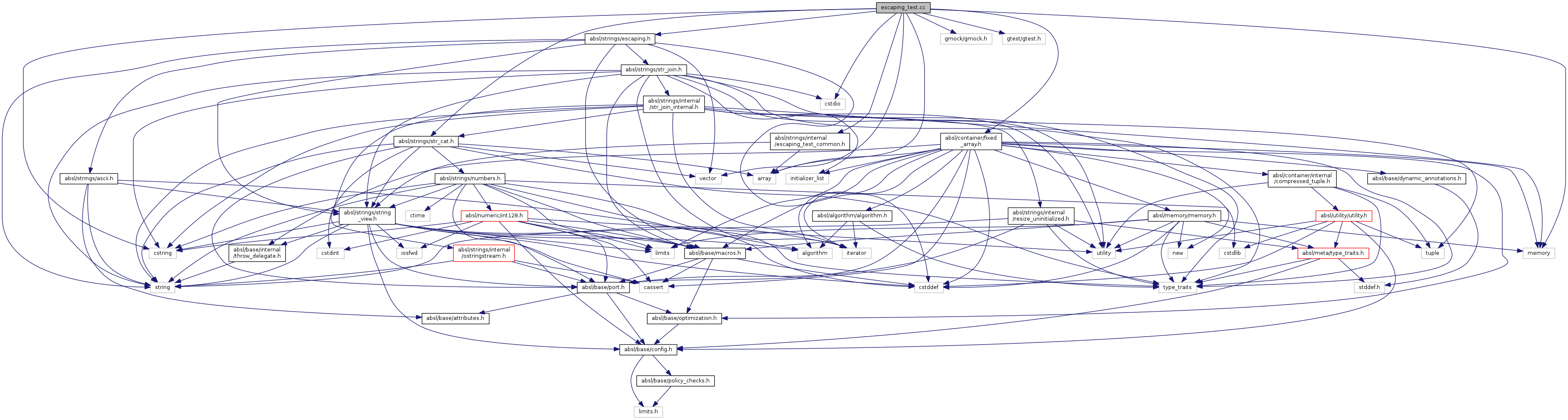 #include "absl/strings/escaping.h"#include <array>#include <cstdio>#include <cstring>#include <memory>#include <vector>#include "gmock/gmock.h"#include "gtest/gtest.h"#include "absl/container/fixed_array.h"#include "absl/strings/str_cat.h"#include "absl/strings/internal/escaping_test_common.h"