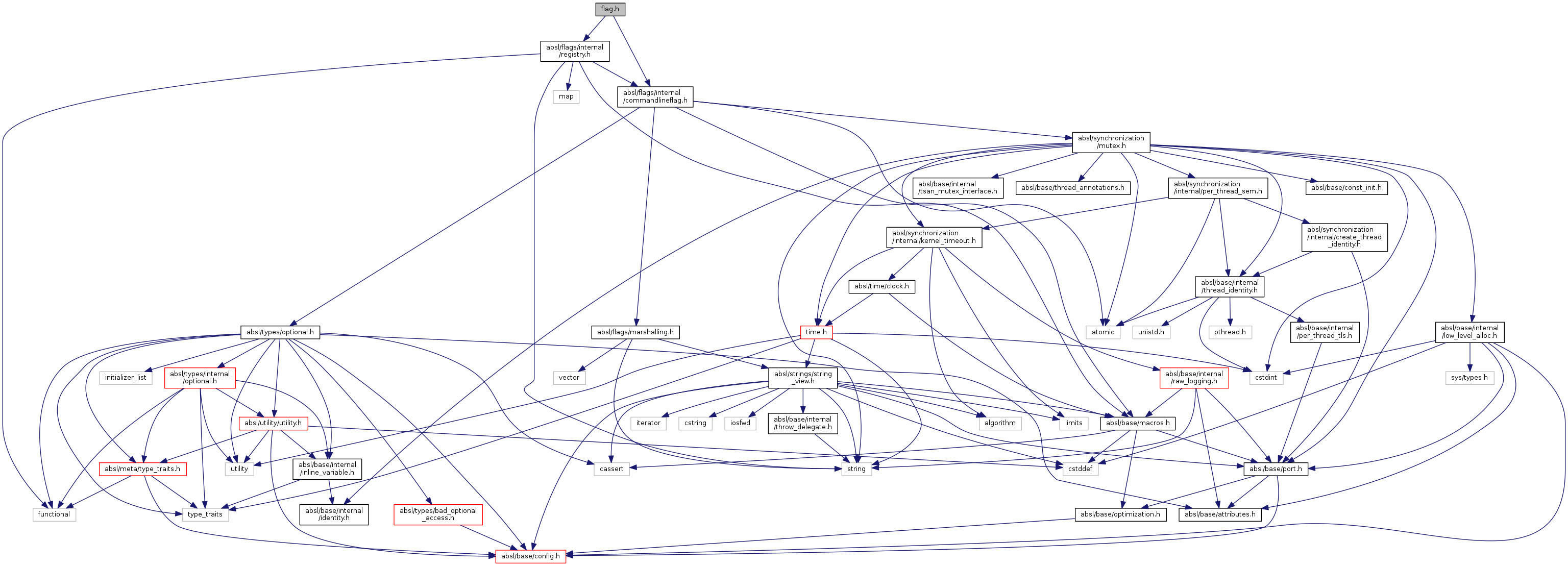 Include dependency graph for internal/flag.h: