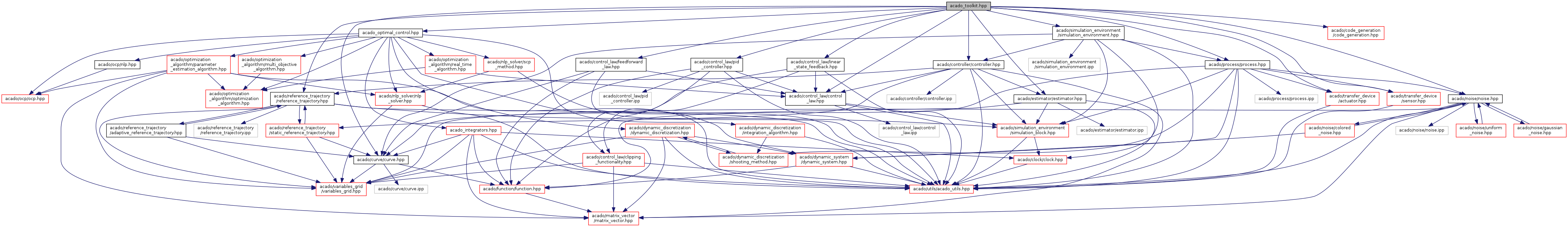 #include <acado_optimal_control.hpp>#include <acado/curve/curve.hpp>#include <acado/controller/controller.hpp>#include <acado/estimator/estimator.hpp>#include <acado/control_law/control_law.hpp>#include <acado/control_law/pid_controller.hpp>#include <acado/control_law/linear_state_feedback.hpp>#include <acado/control_law/feedforward_law.hpp>#include <acado/reference_trajectory/reference_trajectory.hpp>#include <acado/simulation_environment/simulation_environment.hpp>#include <acado/process/process.hpp>#include <acado/noise/noise.hpp>#include <acado/transfer_device/actuator.hpp>#include <acado/transfer_device/sensor.hpp>#include <acado/code_generation/code_generation.hpp>