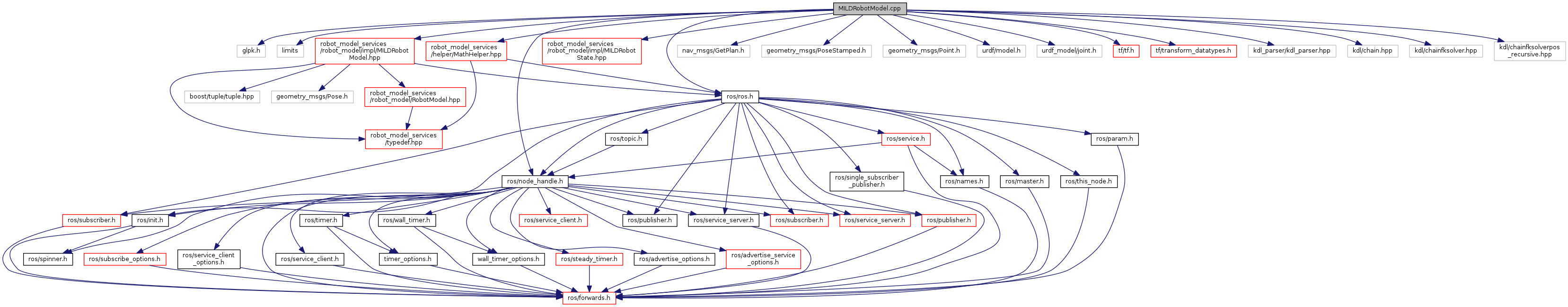 #include <glpk.h>#include <limits>#include <ros/ros.h>#include <ros/node_handle.h>#include "robot_model_services/robot_model/impl/MILDRobotModel.hpp"#include "robot_model_services/robot_model/impl/MILDRobotState.hpp"#include "robot_model_services/helper/MathHelper.hpp"#include "nav_msgs/GetPlan.h"#include "geometry_msgs/PoseStamped.h"#include "geometry_msgs/Point.h"#include "urdf/model.h"#include "urdf_model/joint.h"#include "tf/tf.h"#include "tf/transform_datatypes.h"#include <kdl_parser/kdl_parser.hpp>#include <kdl/chain.hpp>#include <kdl/chainfksolver.hpp>#include <kdl/chainfksolverpos_recursive.hpp>