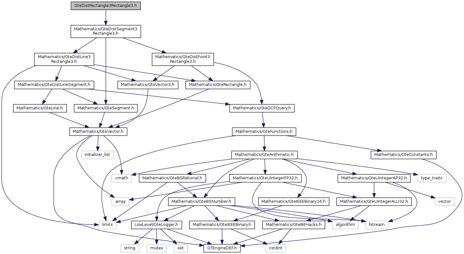 Include dependency graph for GteDistRectangle3Rectangle3.h: