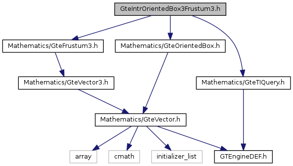 Include dependency graph for GteIntrOrientedBox3Frustum3.h: