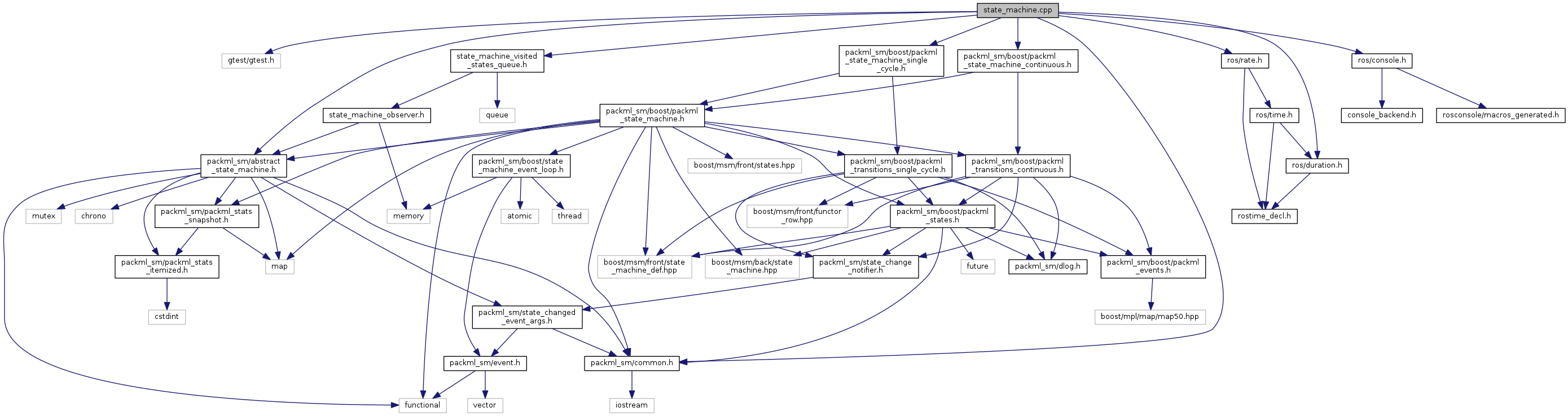 #include <gtest/gtest.h>#include "state_machine_visited_states_queue.h"#include "packml_sm/common.h"#include "packml_sm/abstract_state_machine.h"#include "packml_sm/boost/packml_state_machine_single_cycle.h"#include "packml_sm/boost/packml_state_machine_continuous.h"#include "ros/duration.h"#include "ros/console.h"#include "ros/rate.h"
